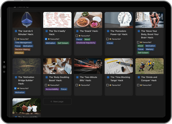 π Struggle to focus? Keep putting things off? This interactive Neuro-Hacks Library helps you take action, beat procrastination, and build better habitsβwithout the burnout.